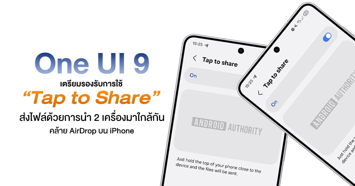 Android Authority ได้เปิดเผยว่าการใช้งานใหม่บน One UI 9 ของ Quick Share จะเป็นส่วนของ “แตะเพื่อแชร์” ซึ่งพบในสตริงระบบและการวิเคราะห์แอป โดยสร้างขึ้นบนพื้นฐานของ NFC นำสมาร์ทโฟนทั้ง 2 เครื่อเข้ามาใกล้กัน โดย NFC จะสร้างการเชื่อมต่อ จากนั้นให้ Quick Share จัดการการถ่ายโอนข้อมูลจริง ซึ่งการทำงานแบบนี้ก็จะเหมือนกับการใช้ AirDrop บน iPhone เมื่อนำทั้ง 2 เครื่องเข้ามาไว้ใกล้กัน