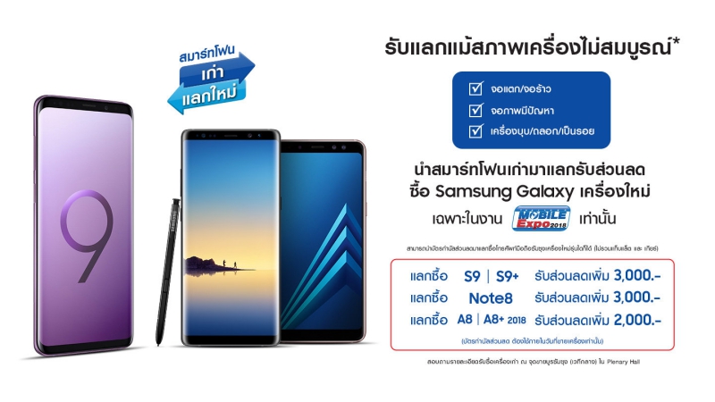งาน Thailand Mobile Expo 2018 ครั้งนี้แฟนๆ Samsung และใครกำลังมองหาสมาร์ทโฟนรุ่นใหม่ไม่ควรพลาดกับโปรโมชั่นทั้งลดทั้งแถมในงานนี้งานเดียวเท่านั้น