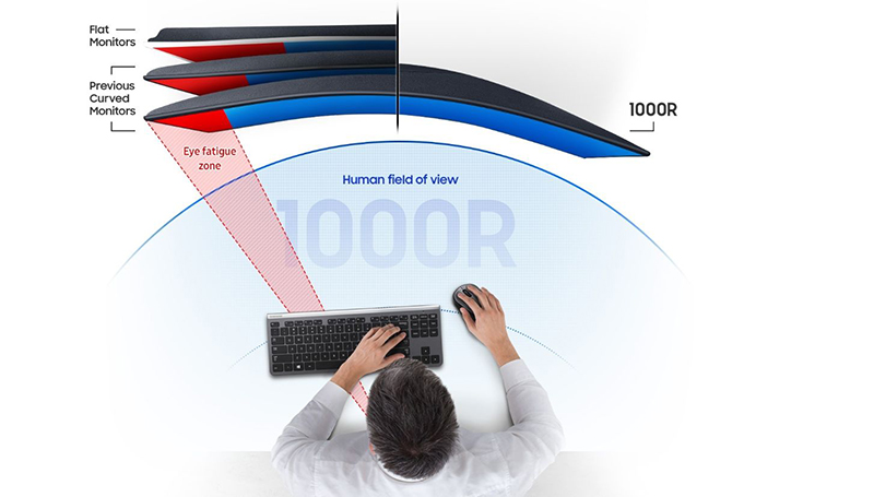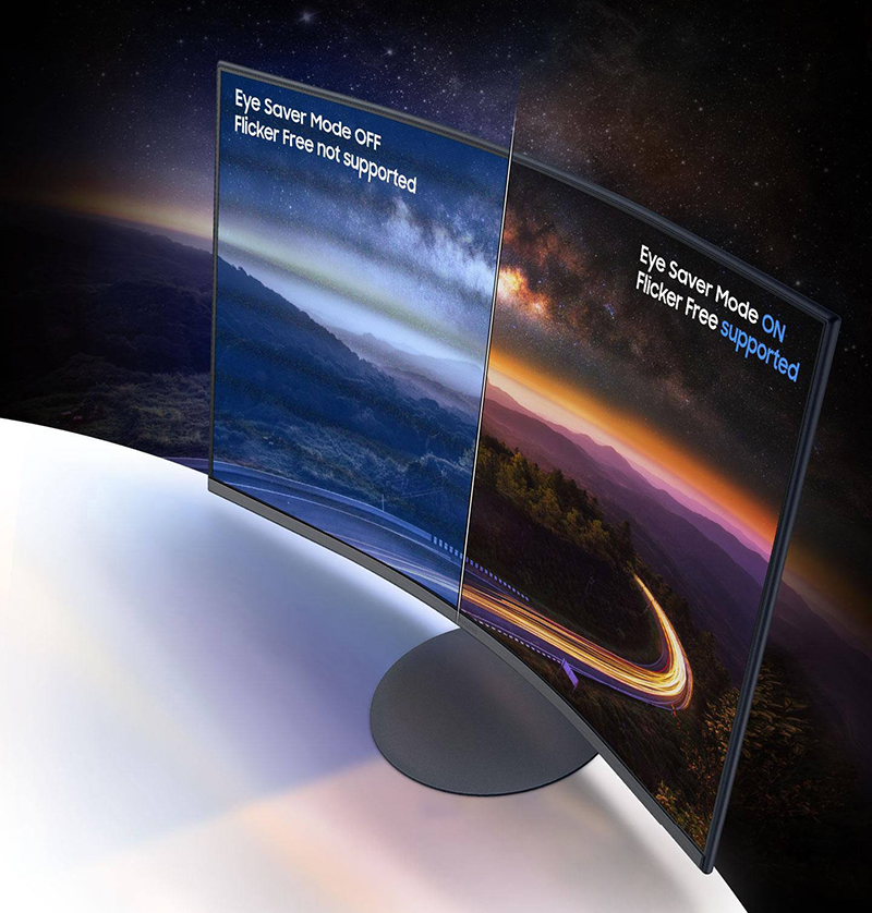 สำหรับหน้าจอ Samsung T55 Series ทุกรุ่นจะมีความโค้ง 1000R ซึ่งเหมาะสมกับการที่สายตาของมนุษย์นั้นมองได้อย่างสะดวกและกว้างๆ กับองศาที่โฟกัส ทั้งยังรองรับเทคโนโลยี FreeSync จาก AMD ที่มี Refresh Rate 75Hz, ผ่านการรับรองการตัดแสงสีฟ้าออกเพื่อถนอมสบายตาจาก TÜV Rhineland และมีสีสัน 119% sRGB, 88% Adobe RGB และ 88% DCI-P3