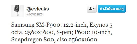 แหล่งข่าวทวิตเตอร์โดย @evleaks ได้ทวีตข้อความว่าทาง Samsung กำลังจะมีแท็บเล็ต 2 รุ่นใหม่ มาพร้อมหน้าจอความละเอียด 2560 x 1600 พิกเซล