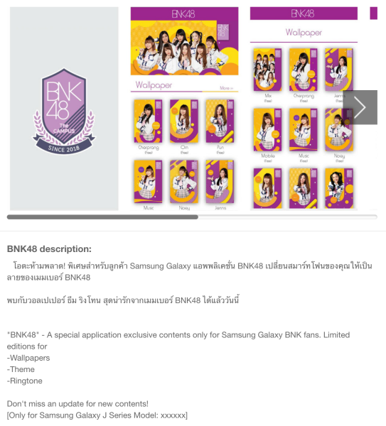 “BNK48” – A special application exclusive contents only for Samsung Galaxy BNK fans. Limited editions for