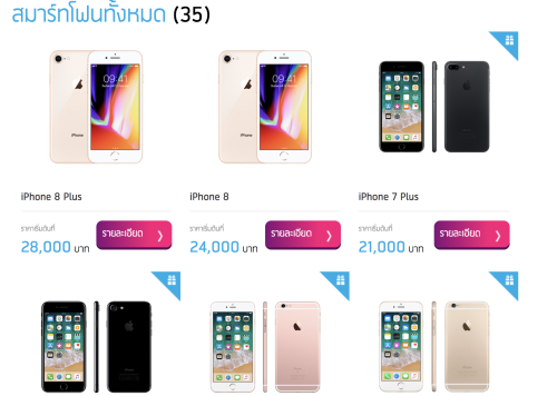 - iPhone8 64GB เริ่มต้นเพียง 24,000 บาท (จากปกติ 29,000 บาท) เมื่อสมัครแพ็กเกจและชำระค่าบริการล่วงหน้าตามที่กำหนด
