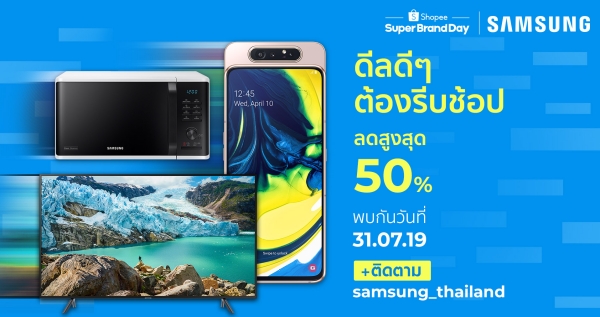 ช้อปผลิตภัณฑ์คุณภาพของซัมซุงที่ Samsung Official Store บนช้อปปี้ เพิ่มความมั่นใจด้วยนโยบายของ Shopee Mall ที่มาพร้อม นโยบายการคืนเงินหรือสินค้าภายใน 15 วัน พร้อมการันตีของแท้ 100% การจัดส่งฟรีทั่วประเทศ นักช้อปสามารถเพลิดเพลินและสะดวกสบายยิ่งขึ้นกับการผ่อนชำระดอกเบี้ย 0% นาน 10เดือนเมื่อมียอดซื้อสินค้าขั้นต่ำ 3,000 บาท  เพลิดเพลินไปกับแคมเปญ “Now’s Your Chance” ได้ตั้งแต่วันที่ 25 – 31 กรกฎาคม 2562 ติดตามรายละเอียดเพิ่มเติมได้ที่ https://shopee.co.th/sbd-samsung