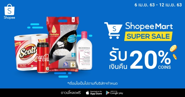 พบกับแคมเปญ Shopee Mart Super Sale ได้ตั้งแต่วันที่ 6 ถึง 12 เมษายน 2563 ได้ที่:
