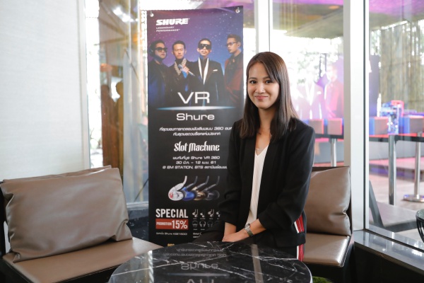นอกจากนี้ทางคุณอิงค์ ทิยา กาญจนชัยภูมิ Business Development Manager บริษัท มหาจักรดีเวลอปเมนท์ จำกัด ได้ให้สัมภาษณ์กับทางสื่อมวลชนถึงที่มาของการจัดงานในครั้งนี้ “โดยหูฟัง SHURE เป็นหูฟังที่ได้รับความนิยมอยู่แล้ว ทั้งในหมู่นักดนตรี และมืออาชีพ เป็นหูฟังที่ค่อนข้างแน่นคุณภาพดีเราก็เลยอยากจะให้ทุกท่านได้ลองสัมผัสกับคุณภาพเสียงที่แท้จริง และก็เป็นการ Introduce วง Slot Machine เป็น Brand Ambassador อีกด้วย” ในส่วนของที่มาของการนำภาพ VR360 มาใช้กับหูฟัง SHURE “ครั้งนี้เป็นครั้งแรกของ SHURE ที่ให้ลูกค้าได้สัมผัสทั้งภาพและเสียงพร้อมๆกัน เราได้จัดมินิคอนเสิร์ต Slot Machine ไป เราก็เลยนำมาทำเป็นภาพ VR เพราะฉะนั้น คนที่ฟังหูฟัง SHURE แล้วดูภาพจาก VR พร้อมๆกันจะรู้สึกเหมือนไปอยู่ในคอนเสิร์ตนั้นจริงๆ ด้วยหูฟัง SHURE ที่ได้เสียงที่แน่นอยู่แล้ว” สำหรับ SHURE Endorser ทำไมถึงเลือกวง Slot Machine เป็น SHURE Endorser “จริงๆ Slot Machine กับแบรนด์ SHURE มีหลายๆอย่างที่คล้ายคลึงกัน เช่น แบรนด์ SHURE ได้มีการก่อตั้ง ตั้งแต่ 1925 ก็ประมาน 93 ปีแล้ว จากเมืองชิคาโก้ อเมริกา และในส่วนวง Slot Machine ก็เป็นวงที่มีมายาวนาน 10 กว่าปี ใกล้จะ 20 แล้ว และก็เนื่องจากวง Slot Machine ที่มีความดังทั่วโลก จะสังเกตได้ว่ามี World Tour Concert อยู่ตลอดเวลาและก็แบร์น SHURE ที่ดังในอเมริกาแล้ว ก็ยังดังในทุกๆทวีป เช่น เอเชีย แอฟริกา ยุโรป โดยสังเกตได้ว่าศิลปินต่างชาติก็ใช้ไมค์ SHURE และหูฟัง SHURE อยู่เรื่อยๆค่ะ” แนะนำโปรโมชั่นในตอนนี้ “สำหรับตอนนี้นะคะ Shopที่ Soundcity ที่ Emquartier มีโปรโมชั่นหูฟัง SHURE ทุกรุ่น ยกเว้น KSE1500 ที่ไม่ร่วมโปรโมชั่น โปรโมชั่นนี้ลด 15% ถึงวันที่ 15 เมษายนนี้” ทิศทางของแบรนด์ SHURE ในปี 2018 “SHURE ก็ยังจะเน้นเรื่องคุณภาพเป็นหลักเหมือนเดิมนะคะ หูฟังที่แน่น มี Dynamic Micro Driver ที่แตกต่างกันไป และก็ไมค์โครโฟนที่มีคุณภาพเหมือนเดิม บลูทูธหูฟังที่เสียงไม่ได้ตกเลยจากหูฟังที่มีสาย ก็จะเน้นเรื่องคุณภาพเป็นหลักค่ะ”