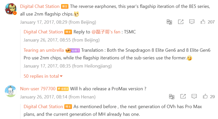 ขณะเดียวกัน เขาก็มองว่า Snapdragon 8 Elite Gen 6 Pro รุ่นต่อไปของ Qualcomm ในโมเดลรุ่น SM8975 อาจถูกสงวนไว้สำหรับสมาร์ทโฟนระดับพรีเมียมที่เน้นการถ่ายภาพภายใต้แบรนด์ Ultra เท่านั้น ไม่ใช่สำหรับอุปกรณ์ Pro หรือ Pro Max ทั่วไป ทั้งนี้ DCS ก็มีการตอบกลับคำถามที่ยังระบุเพิ่มเติมว่าทั้ง Snapdragon 8 Elite Gen 6 และรุ่น Pro คาดว่าจะผลิตด้วยกระบวนการ 2nm โดย TSMC แต่จะมีการแบ่งแยกอย่างชัดเจนระหว่างสมาร์ทโฟนเรือธงรุ่นมาตรฐานและรุ่นระดับสูงสุด