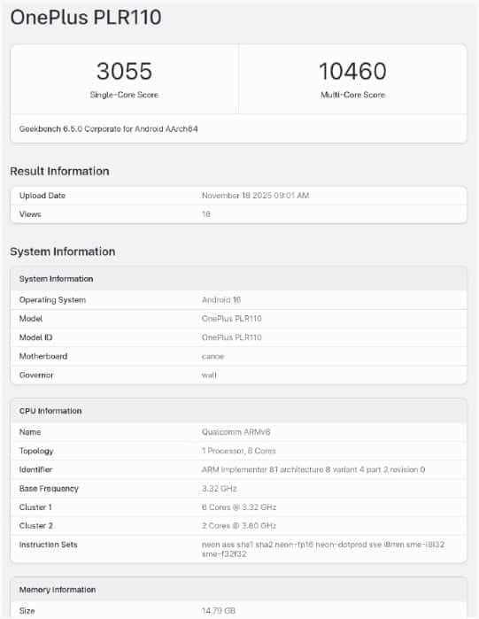 คะแนนของชิป Snapdragon 8 Gen 5 ที่ทำการทดสอบเป็นการใช้บนสมาร์ทโฟนของ OnePlus ที่ทำ Single Core ได้ที่ 3,055 แต้ม และ Multi Core ที่ 10,460 แต้ม ซึ่งคะแนน Single Core นั้นเทียบได้กับของ SD 8 Elite เลย แต่ฝั่ง Mu;ti Core นั้นสูงกว่าค่อนข้างชัดเจน