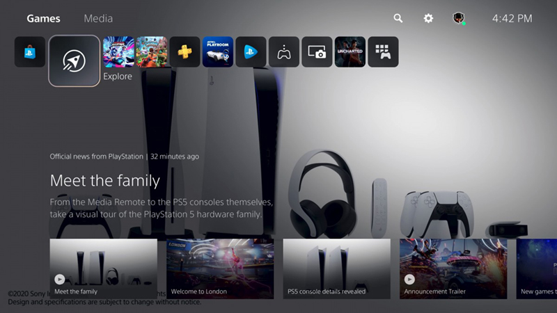 ใน PS5 มีแท็บ Explore เพื่อดูเกมทั้งหมดที่เรามี, เนื้อหาของเกม, ข่าวเกม และข่าวเรื่อง PlayStation ใหม่ๆ ทั้งหมด ซึ่งแท็บนี้จะเริ่มใช้ที่สหรัฐฯ ที่แรกก่อนที่จะปล่อยให้ประเทศอื่นๆ ทีหลังครับ