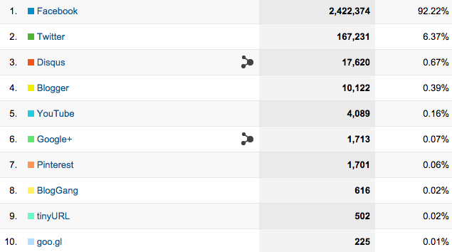 10 อันดับเครือข่ายสังคมออนไลน์มาจาก Facebook มากที่สุด และตามมาด้วย Twitter