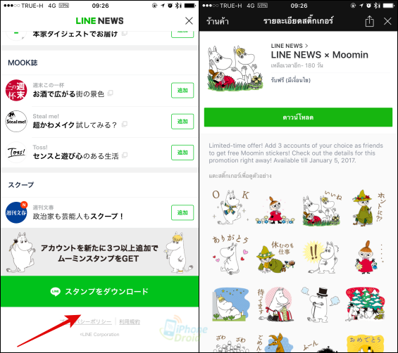- LINE NEWS x Moomin อายุการใช้งาน 180 วัน ดาวน์โหลดได้ถึงวันที่ 5 ม.ค. 2560 VPN (แล้วแตะลิงค์ http://line.me/R/shop/detail/7481)