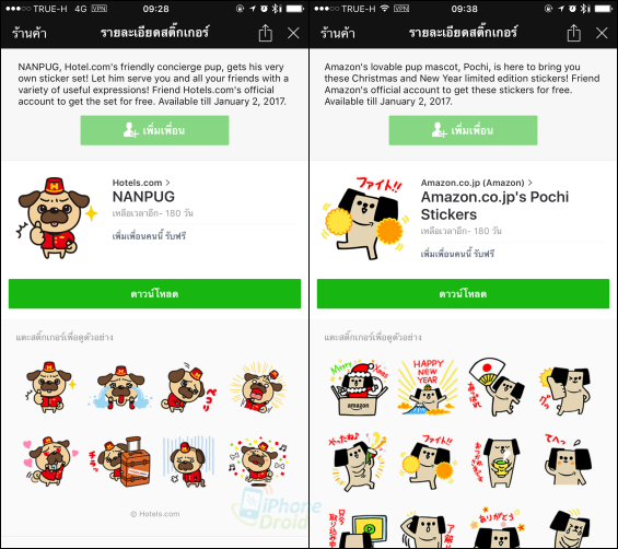 - Amazon.co.jp’s Pochi Stickers อายุการใช้งาน 180 วัน ดาวน์โหลดได้ถึงวันที่ 2 ม.ค. 2560 (ลิงค์ดาวน์โหลด http://line.me/R/shop/detail/7570)