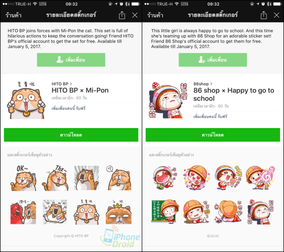 86 shop x Happy to go to school อายุการใช้งาน 90 วัน ดาวน์โหลดได้ถึงวันที่ 5 ม.ค. 2560 (ลิงค์ดาวน์โหลด http://line.me/R/shop/detail/7578)
