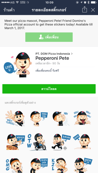 - Pepperoni Pete อายุการใช้งาน 90 วัน ดาวน์โหลดได้ถึงวันที่ 1 มี.ค. 60 http://line.me/R/shop/detail/7921