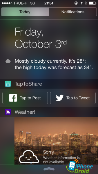 แอพที่กำลังพูดถึงอยู่นี้คือ TapToShare เราสามารถแชร์สถานะไปยัง Facebook และ Twitter ได้ที่หน้า Notification Center ครับ