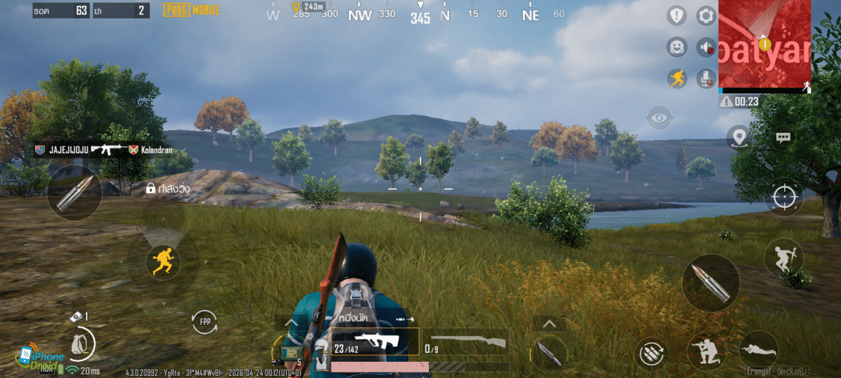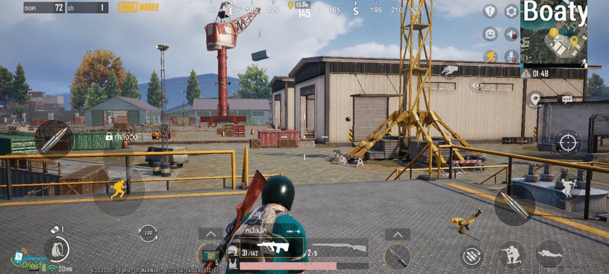 มาเปิดกันที่เกม PUBG Mobile กันเลยดีกว่า เกมนี้เราสามารถเปิดกราฟิกได้ในระดับ HDR พร้อมด้วยเฟรมเรทถึงสูงมากด้วย ทำให้เราเล่นได้แบบไหลลื่น การเคลื่อนไหวระหว่างการเล่นทำได้ดีมาก โมชันเบลอแทบไม่มีเลยด้วย และที่สำคัญคือการสัมผัสปุ่มต่างๆ หรือการเคลื่อนที่ทำได้ยอดเยี่ยมมาก ทำได้ติดนิ้ว ตอบสนองได้ไว ทำให้เราได้เปรียบกว่าคู่แข่งอย่างชัดเจน