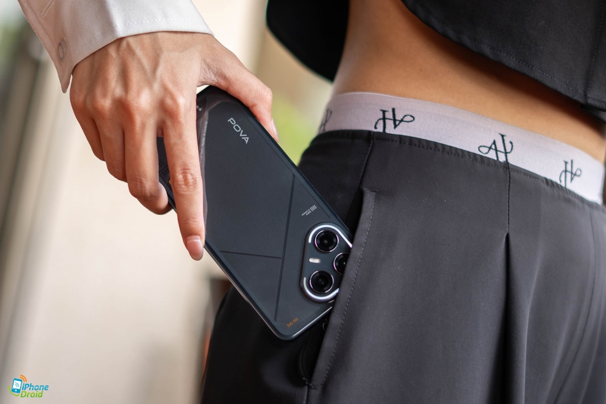 จะเห็นว่า TECNO POVA 7 Ultra 5G จะใช้รูปทรงสามเหลี่ยมในการออกแบบ มีการสื่อถึงตัวอักษร “P” ที่หมายถึงทั้ง “POVA” และ “Power” สะท้อนให้เห็นถึงความแข็งแกร่งและความมั่นคงของตัวเครื่องนั่นเอง