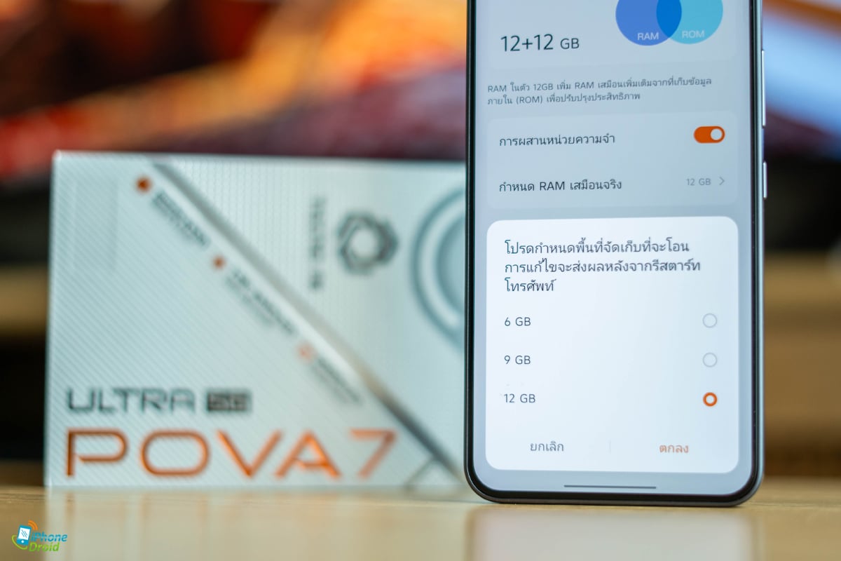 POVA 7 Ultra 5G มาพร้อมกับ RAM ที่มีให้อยู่แล้ว 12GB ซึ่งจริงๆ ถือว่าเยอะมากสำหรับรุ่นราคาหมื่นต้นๆ แต่เท่านั้นยังไม่พอเพราะยังเพิ่ม RAM เสมือนได้อีก 12GB รวมเป็น 24GB ทำให้เราใช้งานและเปิดแอปพลิเคชั่นต่างๆ ได้เยอะขึ้นกว่าเดิม รวมถึงการทำงานเบื้องหลังก็ไม่ได้หยุดการทำงานด้วย ส่วนความจุที่ให้มาอยู่ที่ 256GB ทำให้โหลดแอปหรือเกมต่างๆ ได้เยอะมากแน่นอนครับ