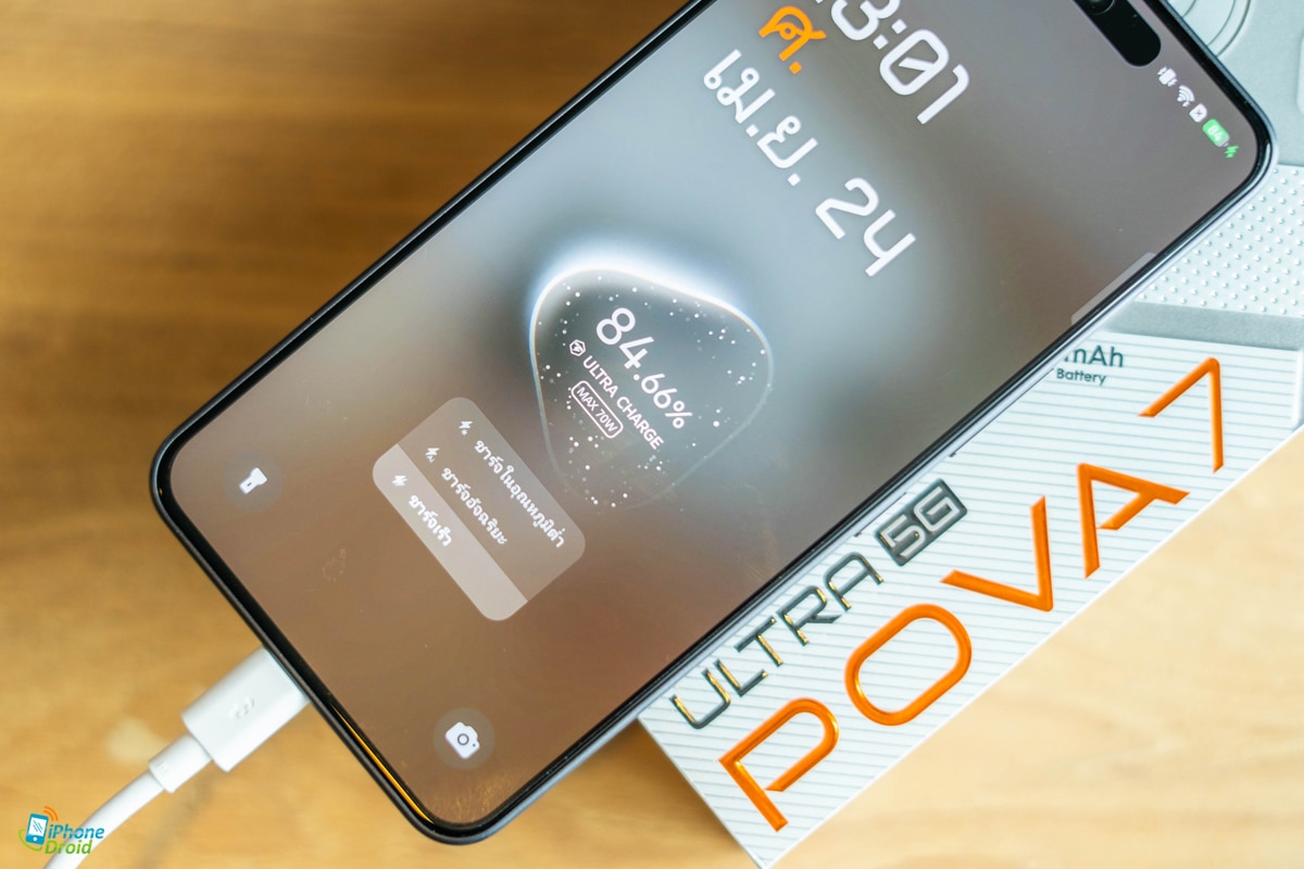 POVA 7 Ultra 5G จัดแบตเตอรี่มาให้ใหญ่ๆ 6000mAh พร้อมให้ใช้งานทั่วไปได้ตลอดวันจริงๆ หรือถ้าเล่นเกมก็ทำได้นาน 6 – 7 ชั่วโมงเลยทีเดียวครับ ซึ่งรุ่นนี้ยังรองรับการชาร์จเร็วถึง 70W Ultra Charge ซึ่งสามารถชาร์จจาก 0-50% ได้ในเวลาแค่ 18 นาที หรือถ้าเต็ม 100% ใช้เวลาแค่ 44 นาทีเท่านั้นครับ