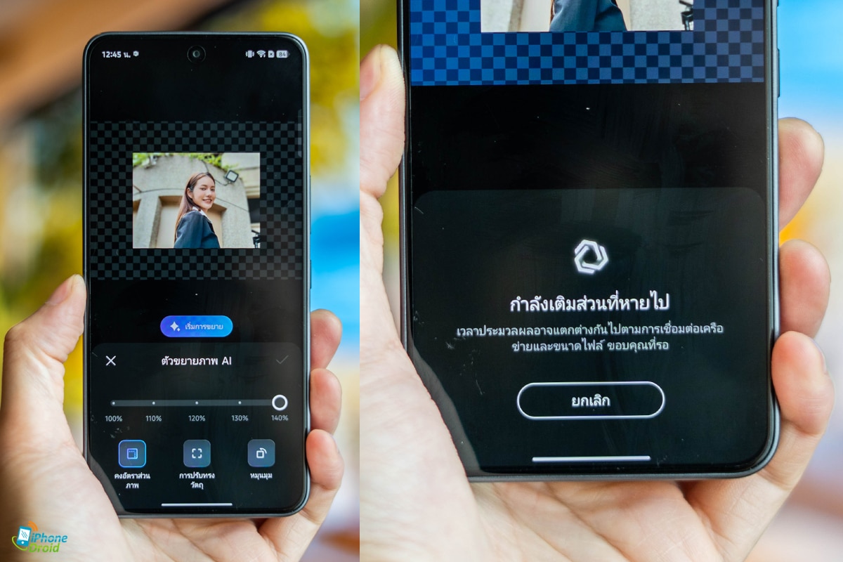 - ขยายภาพด้วย AI Image Extender : สิ่งนี้จะเป็นการขยายภาพถ่ายอัจฉริยะที่ช่วยเพิ่มพื้นที่ภาพได้ตั้งแต่ 100% – 140% โดยเป็นการใช้ AI สร้างรายละเอียดต่อเติมภาพอย่างสมจริงครับ