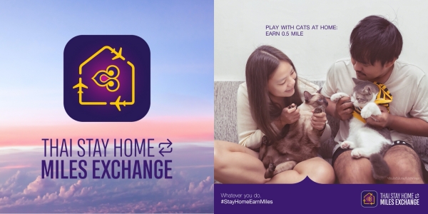 การบินไทยร่วมสนองนโยบายรัฐสนับสนุนคนไทยอยู่บ้าน หยุดเชื้อไวรัสโควิด-19 ด้วยแคมเปญ “เก็บตัว เก็บไมล์ ช่วยชาติกับการบินไทย” ครั้งแรกของเมืองไทย ให้คนไทยยิ่งอยู่บ้านยิ่งได้สะสมไมล์ไว้บินหลังพ้นวิกฤต