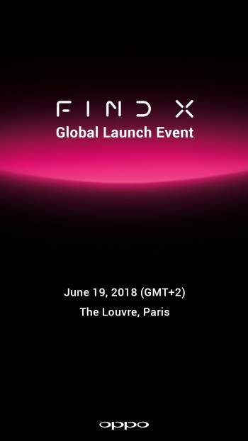 ยืนยันแล้วกับภาพโปสเตอร์ OPPO Find X ประกาศเปิดตัวอย่างเป็นทางการ ครั้งแรกในกรุงปารีส ประเทศฝรั่งเศส ในวันที่ 19 มิถุนายนนี้ หลังจากมีภาพหลุดออกมาเมื่อวานนี้