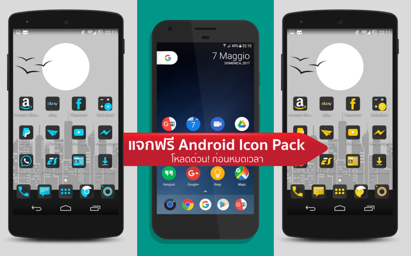 แจกฟรี Android Icon Pack (ปกติขาย) สำหรับเปลี่ยนไอคอนบนหน้าจอสวยๆ ไม่ซ้ำใคร โหลดด่วนที่นี่จำกัดเวลา