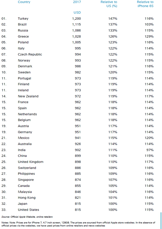 Business Insider ได้เผยแพร่รายงานประจำปีเปรียบเทียบราคา iPhone 7 ในประเทศต่างๆ เพื่อดูว่าประเทศใดวางขายในราคาที่แพงที่สุดและถูกที่สุด