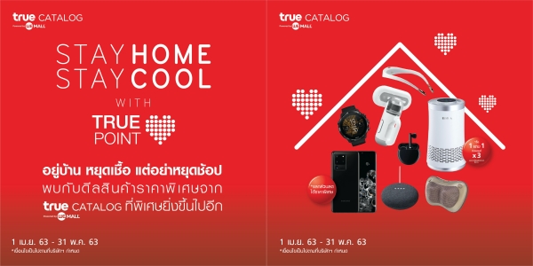 อยู่บ้านหยุดเชื้อ แต่อย่าหยุดช้อป…พบกับดีลสินค้าราคาสุดคุ้มจาก True Catalog ที่พิเศษยิ่งขึ้นไปอีก!!! ลูกค้าทรูใช้ทรูพอยท์ลดเพิ่มสูงสุดถึง 2,000 บาท หรือ 1 พอยท์ = 1 บาท พร้อมรับทรูพอยท์จุกๆ แบบ X 3 ที่นี่ที่เดียว