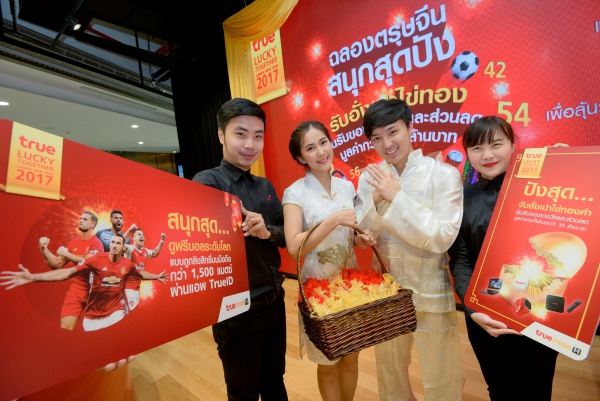 กลุ่มทรู ร่วมฉลองเทศกาลตรุษจีน สนุกสุดปัง กับแคมเปญ “True Lucky Together” มอบโชคสุดพิเศษสำหรับลูกค้าที่เปิดเบอร์มหามงคลกับทรูมูฟ เอช เสริมดวงชะตา มั่งมีศรีสุข เฮงปีระกา สนุกสุดกับสิทธิ์ดูบอลระดับโลกแบบถูกลิขสิทธิ์ฟรี 1 เดือน ผ่านแอพพลิเคชั่น TrueID และปังสุดกับสิทธิ์จับอั่งเปาไข่ทองคำผ่านแอพพลิเคชั่น TrueYou ลุ้นรับรางวัลมากมาย อาทิ อินเทอร์เน็ต 3G/4G+ สูงสุด 5 GB, ส่วนลดเครื่องดื่มจากร้านทรูคอฟฟี่, ส่วนลดสินค้าจาก iPhone, iPad และแบรนด์ชั้นนำอื่นๆ สูงสุด 2,000 บาท รวมมูลค่ากว่า 35 ล้านบาท โดยลูกค้าจะได้รับบาร์โค้ดหรือ รหัส USSD เพื่อนำไปแลกสินค้าได้ที่ทรูช้อปและทรูคอฟฟี่ทุกสาขา
