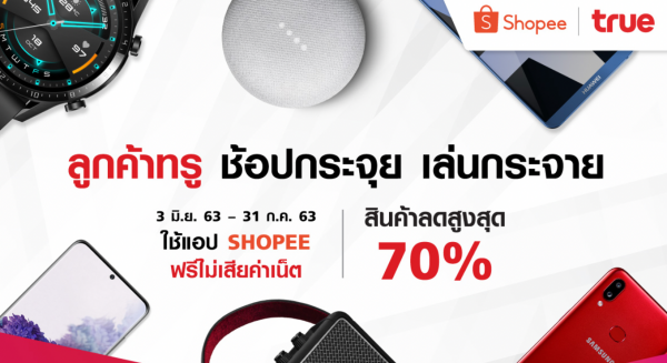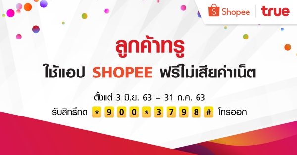 ลูกค้าทรูทุกคน ใช้แอป Shopee ไม่เสียค่าเน็ต รับสิทธิ์กด *900*3798# ได้ตั้งแต่วันที่ 3 มิ.ย. – 31 ก.ค. 2563 เพียงเท่านี้ก็เลือกซื้อสินค้ากันแบบเพลินๆ ได้เลย
