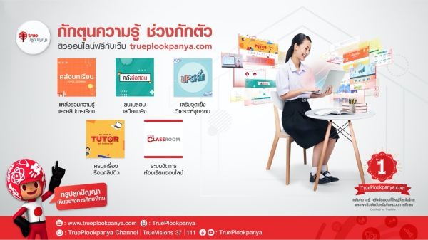 ดร.เนตรชนก วิภาตะศิลปิน ผู้อำนวยการด้านการศึกษาและวิชาการ บมจ. ทรู คอร์ปอเรชั่น กล่าวว่า “ด้วยวิกฤตการณ์การแพร่ระบาดของเชื้อไวรัสโควิด-19 ที่ทำให้โรงเรียนต้องปิดเทอมนานขึ้น ทั้งคุณครู และนักเรียน จำเป็นต้องอยู่บ้าน หยุดเชื้อ เพื่อชาติ กลุ่มทรู โดยทรูปลูกปัญญา ตระหนักถึงความสำคัญของการศึกษาเยาวชนไทยที่ยังคงต้องเดินหน้าอย่างต่อเนื่อง จึงสานต่อภารกิจสร้างสังคมแห่งการเรียนรู้ที่ไม่สิ้นสุด โดยทุ่มเต็มศักยภาพ นำจุดเด่นและองค์ความรู้ทั้งหมดที่มีของทรูปลูกปัญญา คลังความรู้ออนไลน์ขนาดใหญ่ที่ครบทุกเรื่องการศึกษาและสาระความรู้ มาเป็นเครื่องมือสำคัญเพื่อช่วยเสริมการเรียนการสอนของทั้งคุณครูและนักเรียนในทุกระดับ ตั้งแต่ชั้นประถมศึกษาถึงมัธยมศึกษา ได้แก่ คลังบทเรียน คลังข้อสอบ ระบบอัปสกิล ปลูกติวเตอร์ (Plook Tutor) และ ปลูกคลาสรูม (Plook Classroom) และโดยเฉพาะในช่วงที่สถานการณ์เช่นนี้ที่ต้องเรียนจากที่บ้าน ทรูปลูกปัญญา จึงเปิด “คอร์สเรียนออนไลน์” ให้ใช้โดยไม่เสียค่าใช้จ่าย ผ่านเว็บไซต์ www.trueplookpanya.com ซึ่งประกอบด้วย คอร์สซัมเมอร์ภาษาอังกฤษ และคอร์สติวเตรียมตัวสอบเลื่อนชั้น ทั้งระดับขึ้นมัธยมศึกษาปีที่ 1 มัธยมศึกษาปีที่ 4 และคอร์สเข้มข้นเพื่อติวสอบเข้ามหาวิทยาลัย ให้นักเรียนได้ฝึกทักษะ ทบทวนความรู้ ลองทำข้อสอบ เตรียมความพร้อมก่อนเปิดภาคเรียนใหม่ และสำหรับคุณครู ยังเปิดบทเรียนออนไลน์ เทอม 1 สำหรับการจัดการเรียนการสอนแบบออนไลน์อีกด้วย”