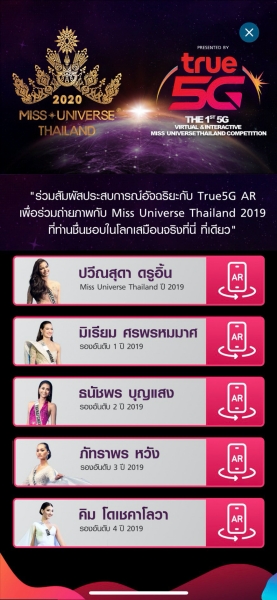 True5G เอาใจแฟนนางงาม ประกบ ฟ้าใส มิสยูนิเวิร์สไทยแลนด์ 2019 และรองทั้ง 4 ผ่านแอป True5G AR