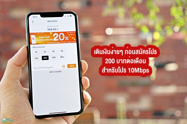 เติมเงินเข้าไปผ่านช่องทางใดก็ได้ 200 บาท เพื่อสมัครแพ็กเกจ 10Mbps เล่นเน็ตได้ไม่อั้น