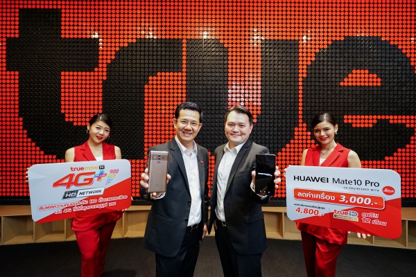 ทรูมูฟ เอช 4G HD Network มาตรฐานใหม่ของ 4G ที่มากกว่าความเร็วแรง ให้ความคมชัดทั้งภาพและเสียงระดับ HD โดย นายทวนทอง ศรีวิเชียร (ซ้าย) ผู้อำนวยการ ด้านบริหารผลิตภัณฑ์ดีไวซ์ บริษัท ทรู คอร์ปอเรชั่น จำกัด (มหาชน) ร่วมกับ หัวเว่ย โดย นายทศพร นิษฐานนท์ (ขวา) รองผู้อำนวยการ หัวเว่ย คอนซูมเมอร์ บิสสิเนส กรุ๊ป (ประเทศไทย) เปิดให้สาวก Pre-booking สมาร์ทโฟนเรือธง HUAWEI Mate 10 Pro สมาร์ทโฟนชิปเซ็ต AI รุ่นแรกของโลก พร้อมย้ำจุดเด่นกล้องคู่ f/1.6 เทคโนโลยีจาก Leica รุ่นล่าสุด ตั้งแต่วันที่ 18 – 26 พฤศจิกายน 2560 มีให้เลือก 2 สียอดนิยม Mocha Brown และ Midnight Blue ในราคา 27,900 บาท พร้อมข้อเสนอสุดพิเศษ! รับส่วนลดค่าเครื่อง 3,000 บาท และส่วนลดค่าบริการรายเดือนสูงสุด 4,800 บาท เพียงสมัครแพ็กเกจ 4G+ Fun Unlimited 1099 ขึ้นไป และชำระค่าบริการรายเดือนล่วงหน้า 1,500 บาท เล่นเน็ต 4G ได้ไม่อั้น ไม่ลดสปีด สนุกครบทุกความบันเทิงทั้งกีฬาระดับโลก ภาพยนตร์ใหม่ ทีวีฮิต ฟังเพลง ผ่านแอพพลิเคชั่น TrueID ด้วยแพ็กเกจ TrueID Premium HD ฟรีนาน 12 เดือน พร้อมรับของที่ระลึกเอ็กซ์คลูซีฟจาก หัวเว่ย ได้แก่ สายรัดข้อมือเพื่อสุขภาพ HUAWEI Band 2 Pro มูลค่า 3,990 บาท และอุปกรณ์เชื่อมต่อ HUAWEI Mate Dock 2 มูลค่า 2,490 บาท รวมทั้งสิ้น 6,480 บาท และรับฟรี ทรูแบล็คการ์ด เมื่อสมัครแพ็กเกจ 4G+ FUN Unlimited 1899 ขึ้นไป ลูกค้าที่สนใจสามารถ pre-booking ได้ที่ www.truemoveh.com/mate10pro/pre-order หรือทางเว็บไซต์ www.WeMall.com ตั้งแต่วันที่ 18 – 26 พฤศจิกายน และรับเครื่องตั้งแต่วันที่ 1 ธันวาคมเป็นต้นไป พิเศษ! สำหรับลูกค้าผู้ถือบัตรทรูแบล็คการ์ด 100 ท่านแรกที่จองเครื่องผ่านเว็บ www.truemoveh.com/mate10pro/pre-order รับฟรี HUAWEI Watch 2 (มูลค่า 10,900 บาท) และ True Point 1,000 คะแนน