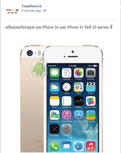 หลังจากที่แอปเปิลประกาศวันวางจำหน่าย iPhone 5s และ iPhone 5c ในประเทศไทยและประเทศอื่นๆ ในกลุ่มที่ 2 อย่างเป็นทางการในวันที่ 25 ตุลาคมนี้ ล่าสุดทรูมูฟ เอช เป็นค่ายแรกประกาศผ่านแฟจเพจพร้อมจำหน่าย iPhone 5s และ iPhone 5c แล้วเช่นกัน สำหรับราคานั้นยังไม่ได้ระบุ หากประกาศราคาเมื่อไหร่ทีมงานจะอัพเดทให้ทราบกันอีกครั้ง