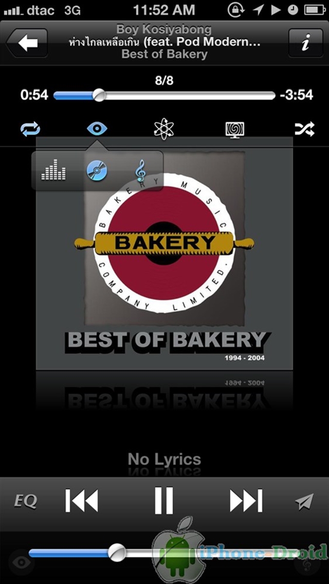 แสดงภาพปกอัลบั้มแบบในภาพนี้เลือกฟังเพลงกันได้เลย หรือหากต้องการปรับ Equalizer ให้เลือกที Eq เพื่อปรับครับผม