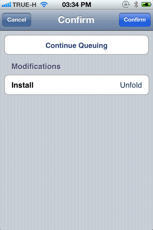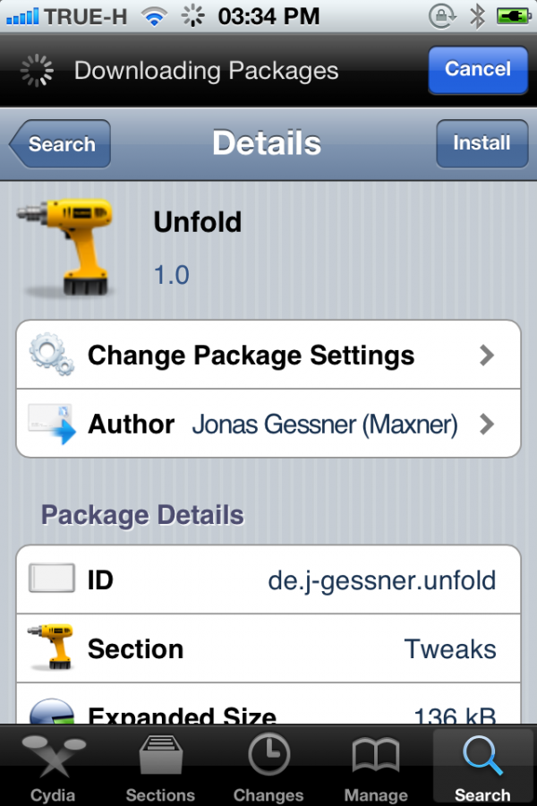 1. ไปที่ Cydia แล้วค้นหาคำว่า Unfold เลือกที่ Install