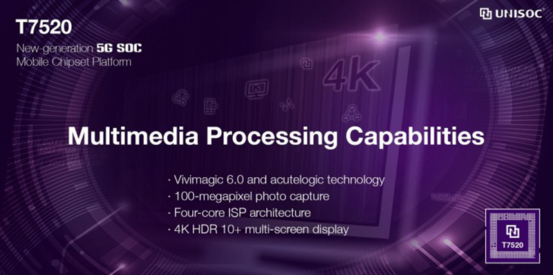 Unisoc T7520 มาพร้อมกับ CPU Cortex-A76 จำนวน 4 คอร์ บวกกับ A55 อีก 4 คอร์ (ไม่ทราบคาวมเร็ว Clock) ขณะที่ GPU จะใช้เป็น Mali-G57 รองรับหน้าจอ 4K + HDR10+ และ Refresh Rate 120Hz โดยสามารถรองรับกล้องความละเอียด 100 ล้านพิกเซลได้