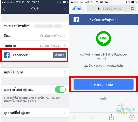 เข้าไปที่ การตั้งค่า > บัญชี > Facebook (เชื่อมต่อ) จากนั้นถ้ายังไม่เคยล็อคอิน Facebook ผ่าน browser ไว้ จะขึ้นหน้าล็อคอินมาให้นะครับ แต่ถ้าเคยล็อคอินไว้แล้วจะขึ้นมาให้ดำเนินการต่อ ถ้ามีหลายบัญชี Facebook ยังไงแล้วดูให้ถูกต้องด้วยนะครับว่าใช่บัญชีที่ต้องการด้วยมั้ยนะครับ