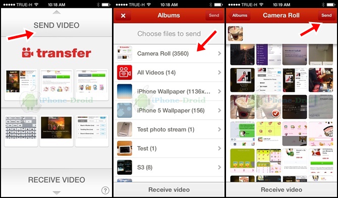 หลังจากที่ติดตั้งลงบน iPhone, iPad เรียบร้อยแล้วเรามาเริ่มใช้งานกันเลยครับ หลังจากที่เปิดแอพขึ้นมาแล้วถ้าต้องการส่งภาพหรือวีดีโอให้เลือกไปที่ SEND VIDEO กันได้เลยครับ เลือกไฟล์ภาพหรือวีดีโอไปจนครบตามจำนวนที่ต้องการจากนั้นเลือกที่ Send ครับ