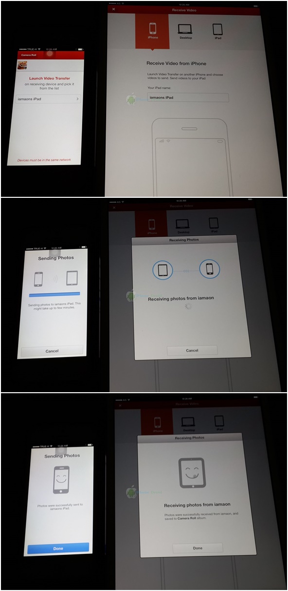 เลือกไปที่ชื่อ iPad ของเราได้เลยครับ แอพก็จะเริ่มส่งภาพหรือวีดีโอให้ทันที