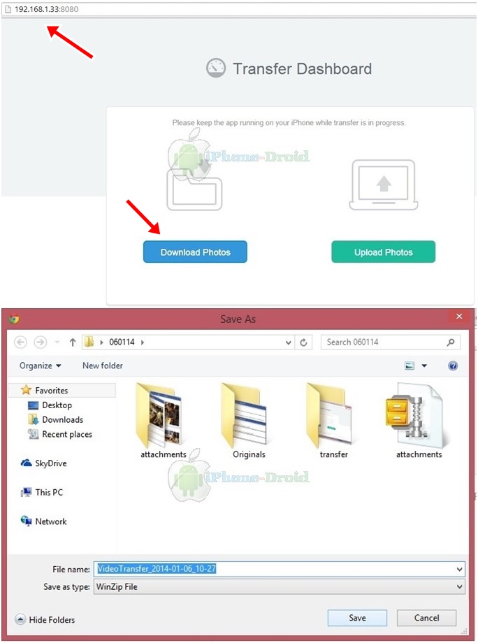 หลังจากที่พิมพ์ address ตามที่แอพกำหนดให้เรียบร้อยแล้ว เลือกไปที่ Download Photos กันได้เลยครับ แล้วก็บันทึกภาพไปที่โฟลเตอร์ต่าง ๆ บนคอมพิวเตอร์กันได้เลยครับ ใช้เวลาในการส่งภาพแป๊ปเดียวไม่นานครับ