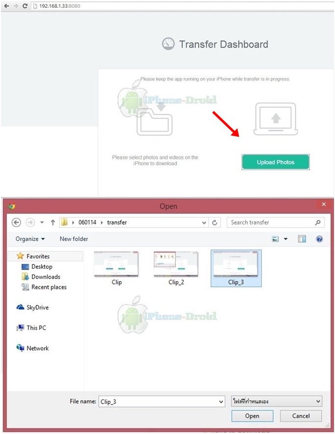 เลือกภาพที่จะส่งจากนั้น Open รูปก็จะถูกส่งเข้ามา iPhone, iPad และเข้าสู่ Camera Roll เรียบร้อย