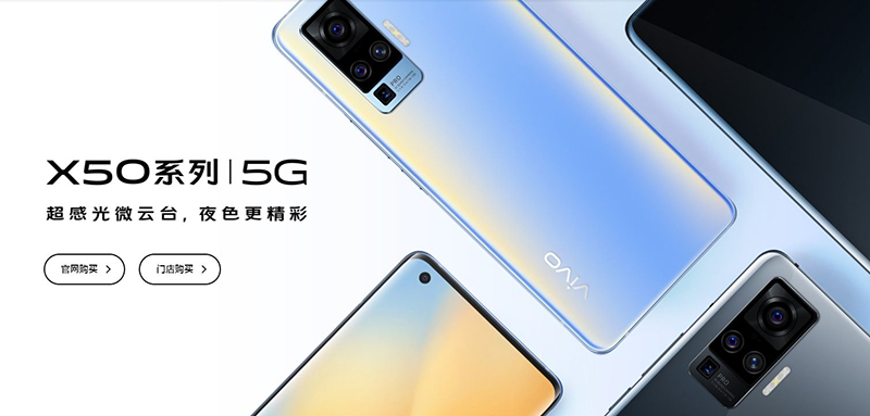 เราขอเริ่มที่ตัวรุ่นพี่ใหญ่อย่าง X50 Pro+ มาพร้อมกับหน้าจอแสดงผล AMOLED ขนาด 6.56 นิ้ว ความละเอียด FHD+ (2376 × 1080 พิกเซล), Refresh Rate 90Hz ขับเคลื่อนด้วยหน่วยประมวลผล Snapdragon 865, RAM 8GB + ROM 128/256GB, แบตเตอรี่ 4315mAh รองรับ Fast Charge 33W