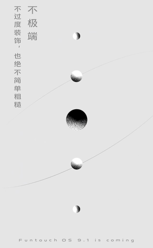 โดย Vivo ก็ได้ปล่อยวิดีโอทีเซอร์ของ Funtouch OS 9.1 ออกมาด้วยเช่นกัน โดยมีข้อความภายในว่า “ไม่สุดขีด” และ “ไม่ได้ตกแต่งเกินไปและไม่เรียบง่าย” โดยความหมายของ 2 ประโยคนี้คาดว่าจะเป็นการใบ้ถึงดีไซน์ใหม่และอาจจะมีฟีเจอร์ใหม่บางส่วนเพิ่มเติมเข้ามาเพียงเล็กน้อยเท่านั้น เพราะปกติแล้วในช่วงที่ Funtouch OS 9 เริ่มอัปเดทนั้นมีฟีเจอร์ใหม่ 77 อย่าง, การปรับแต่ง 55 อย่าง และพัฒนาด้าน UI ถึง 263 ครั้ง และมีหน้าตาต่างจากเดิม ซึ่งหาก Vivo จะอัปเดทครั้งใหญ่ก็น่าจะใช้ชื่อ Funtouch OS 10 ไปเลย