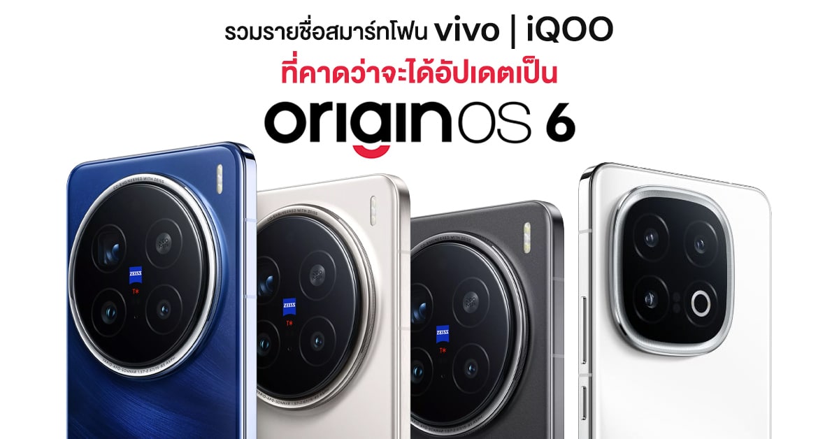 รวมรายชื่อสมาร์ทโฟน vivo | iQOO ที่คาดว่าจะได้อัปเดตเป็น OriginOS 6 (Android 16) ก่อนเปิดตัวจริง 15 ต.ค.นี้