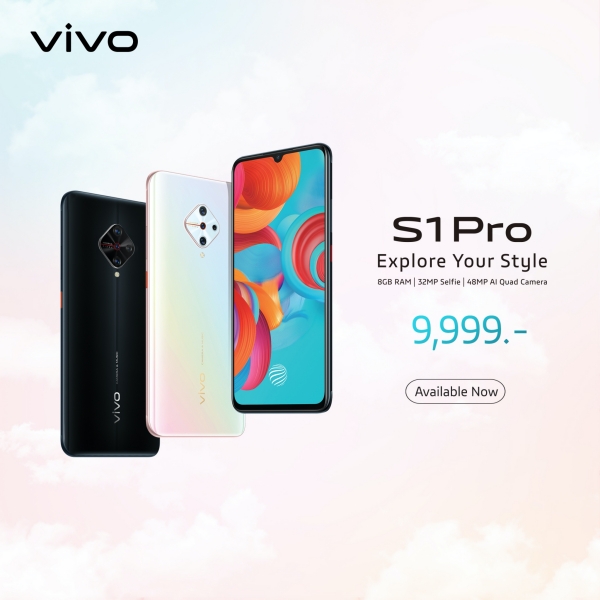 Vivo S1 Pro เปิดวางจำหน่ายอย่างเป็นทางการแล้ว ด้วยแรงบันดาลใจจากเครื่องประดับที่หรูหรา และสถาปัตยกรรมพระราชวัง การดีไซน์แบบ Diamond ที่เพิ่มความรู้สึกแปลกใหม่ และมีชีวิตชีวา ทำให้ S1 Pro ดูสมบูรณ์แบบ Vivo S1 Pro มาพร้อม AI Quad Camera กล้องหลักความละเอียด 48 ล้านพิกเซล ทั้งยังมาพร้อมเลนส์ wide-angle เลนส์ macro และเลนส์ bokeh โดย S1 Pro กับการเป็นผู้นำกล้องหน้าสุดคมชัด ด้วยความละเอียดสูงถึง 32 ล้านพิกเซล ถ่ายภาพได้อย่างสมบูรณ์ในทุกรายละเอียด S1 Pro ปลดล็อกหน้าจอด้วยลายนิ้วมือ พร้อมด้วยไอคอนใหม่และแอนิเมชันปลดล็อกหลากหลายรูปแบบที่จะนำความสนุกมาให้คุณ Vivo S1 Pro มาพร้อมกับแบตเตอรี่ขนาดใหญ่ 4500mAh (TYP) USB Type-C พร้อมด้วยเทคโนโลยีชาร์จเร็วสุดเฉพาะของ Vivo กับ Dual-Engine Fast Charging S1 Pro มาพร้อมกับหน่วยประมวลผล Qualcomm Snapdragon Octa-core พร้อมด้วย RAM 8GB ที่ช่วยให้คุณใช้งานได้อย่างไหลลื่นและ ROM 128GB พื้นที่จัดเก็บขนาดใหญ่ ทั้งยังรองรับหน่วยความจำได้สูงสุด 256GB