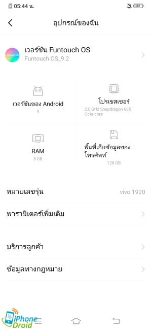 - ระบบปฏิบัติการ Android 9 Pie ครอบทับด้วย Funtouch OS 9.2