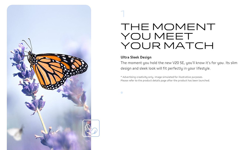 เว็บไซต์ Vivo ของมาเลเซียได้เผยฟีเจอร์บางอย่างของ Vivo V20 SE ออกมาแล้ว ได้แก่ ดีไซน์ตัวเครื่องสุดบาง, ฟีเจอร์กล้อง Super Night Mode และรองรับการชาร์จไว FlashCharge