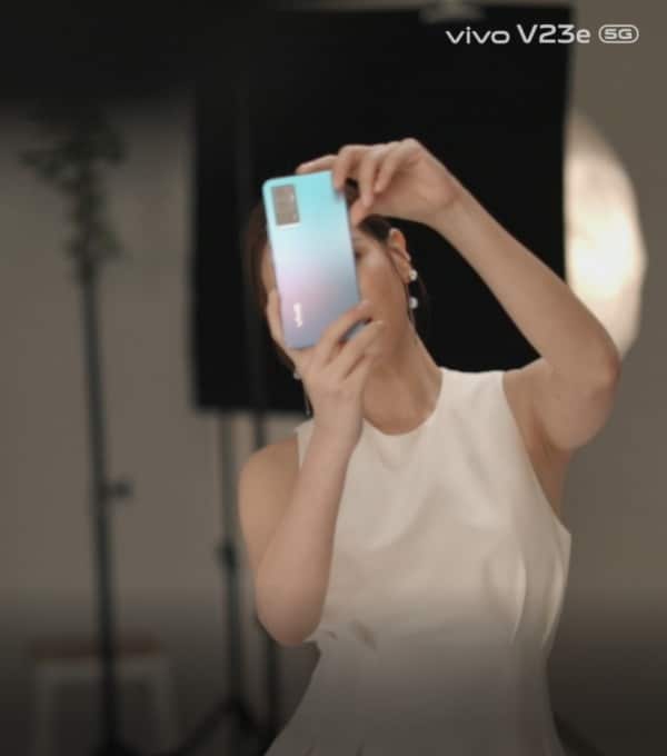 โดยในวิดีโอทีเซอร์ได้เผยให้เห็นภาพเบื้องหลังการถ่ายทำโฆษณา พร้อมพรีเซ็นเตอร์คนล่าสุดกับสมาร์ตโฟน vivo V23e 5G เฉดสีใหม่ที่ยังคงความเป็นเอกลักษณ์ของ vivo และสะท้อนความเป็นตัวตนของผู้ใช้งานได้เป็นอย่างดี คาดว่าสมาร์ตโฟนรุ่นนี้จะมาพร้อมกับกล้องหน้าความละเอียดถึง 44MP และฟีเจอร์ ‘Natural Portrait Selfie’ ที่จะมานิยามการถ่ายเซลฟีแบบใหม่ให้คมชัดในทุกโมเมนต์ที่ดูเป็นตัวตนของเรามากที่สุด